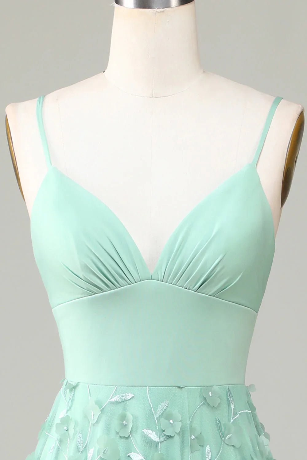 A-line thin shoulder strap sleeveless green bridesmaid dress
