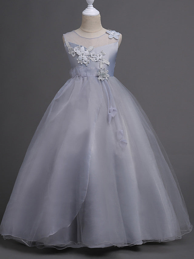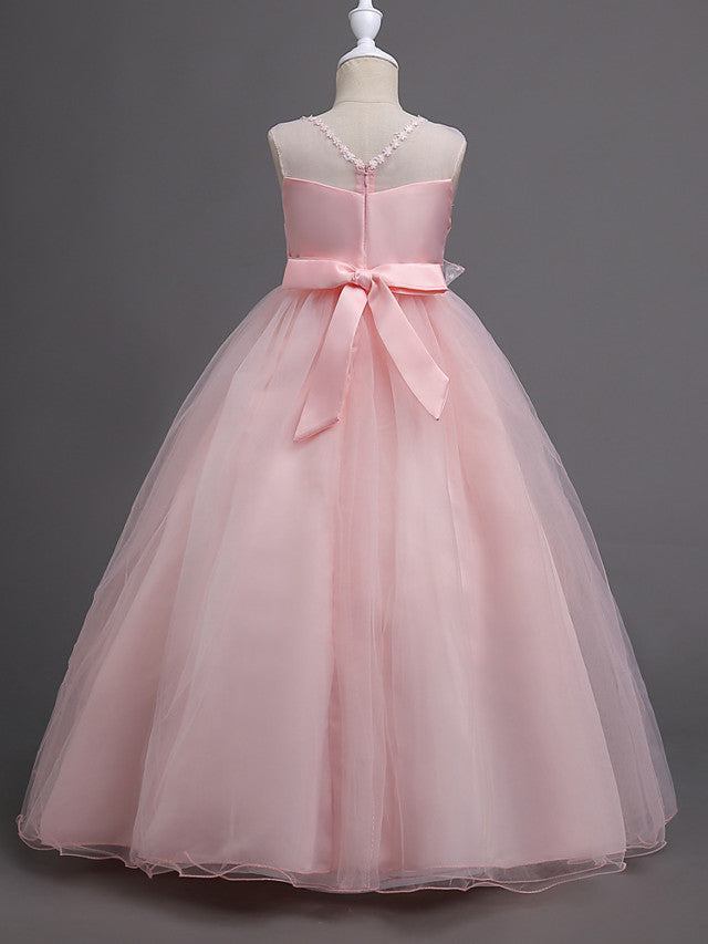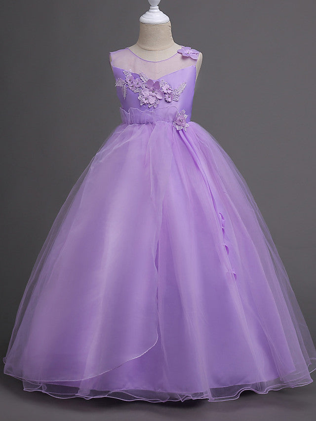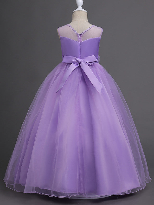 Beautiful Princess Wedding Flower Girl Dress with Belt Appliques