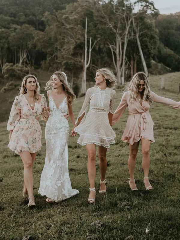 Long Sheath Wedding dresses Lace V-neck Bridal Gowns Floor Length Sexy Elegant